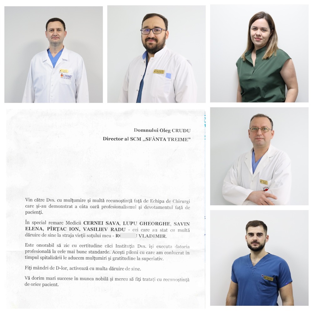 La SCM ”Sfânta Treime”, zi de zi se scrie medicina adevărată. În spatele fiecărei vieți salvate, sunt echipele profesioniste și tehnologiile de ultimă generație. Relevantă în acest sens este scrisoarea adresată conducerii spitalului, pentru echipa de chirurgi care și-au demonstrat de nenumărate ori profesionalismul și devotamentul față de pacienți.